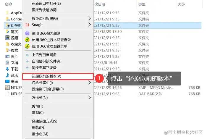 还原以前的版本也可以有效的帮我们恢复磁盘中丢失的数据,具体操作如下: