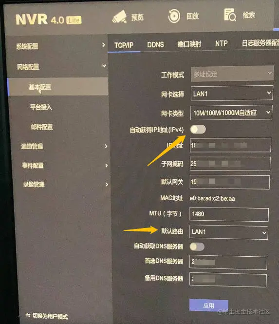 5)双网卡设备要选择与实际网卡一致。将网线换到1口,再自动获取一个设备IP,同步修改平台配置信息后,此时设备已在线,解决了问题。