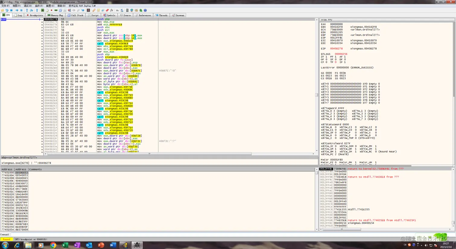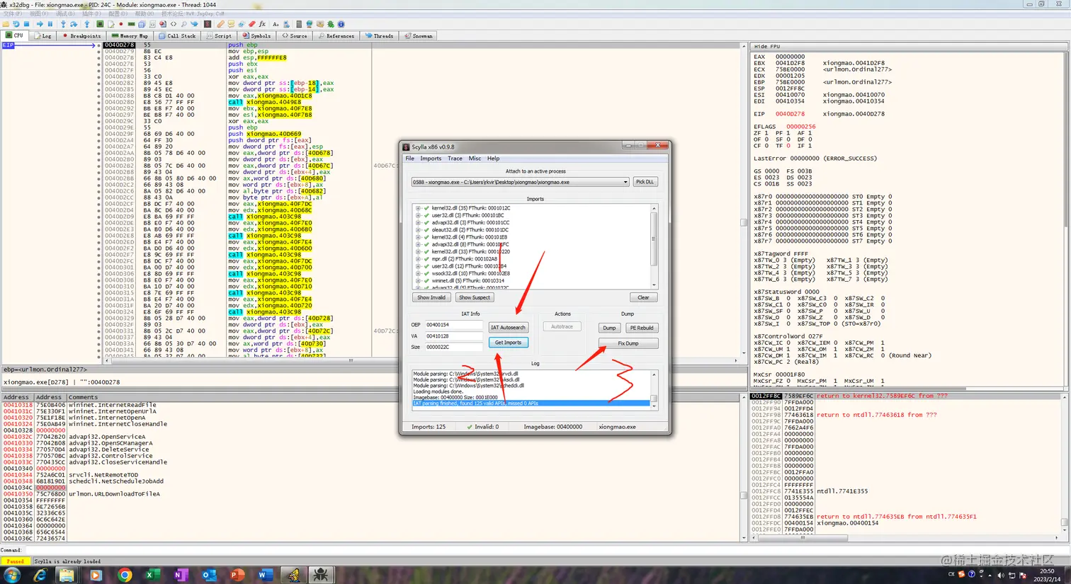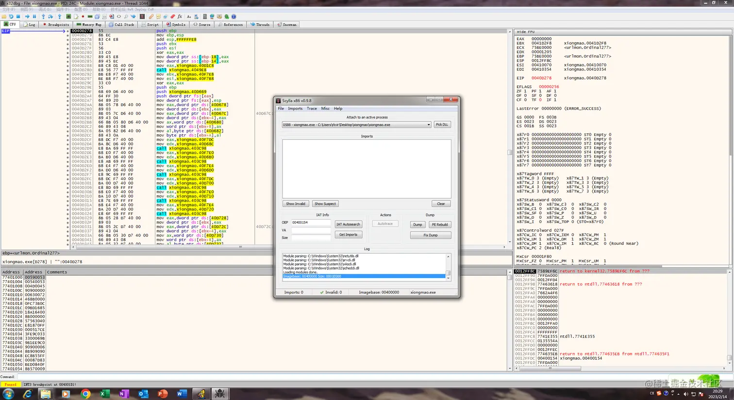根据x32dbg自带插件脱壳先Dump: