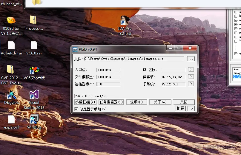 首先修改病毒后缀为exe,然后拖入PEID查看: