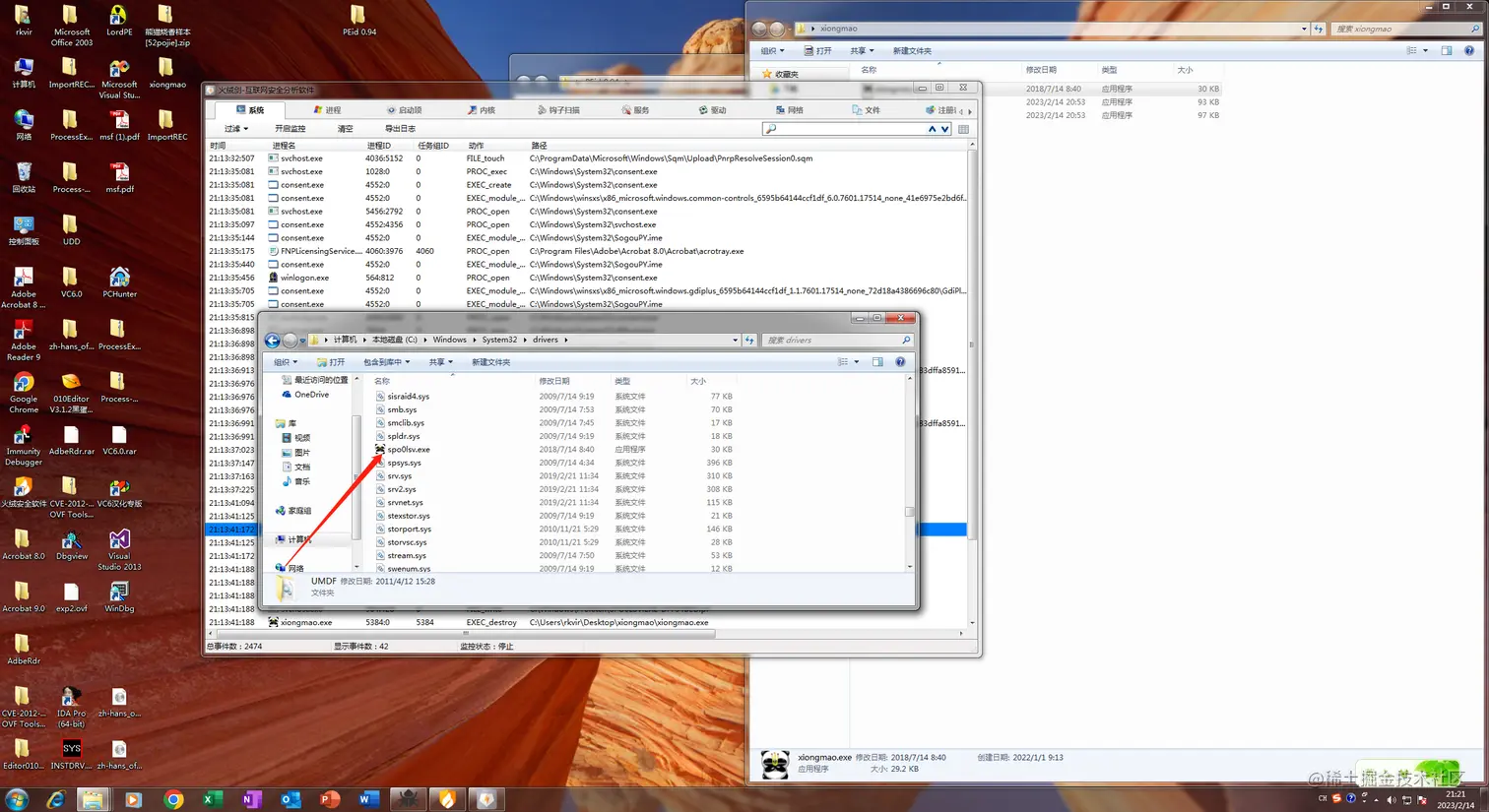 可以看到主要是释放了一个文件,C:\Windows\System32\drivers\spo0lsv.exe:
