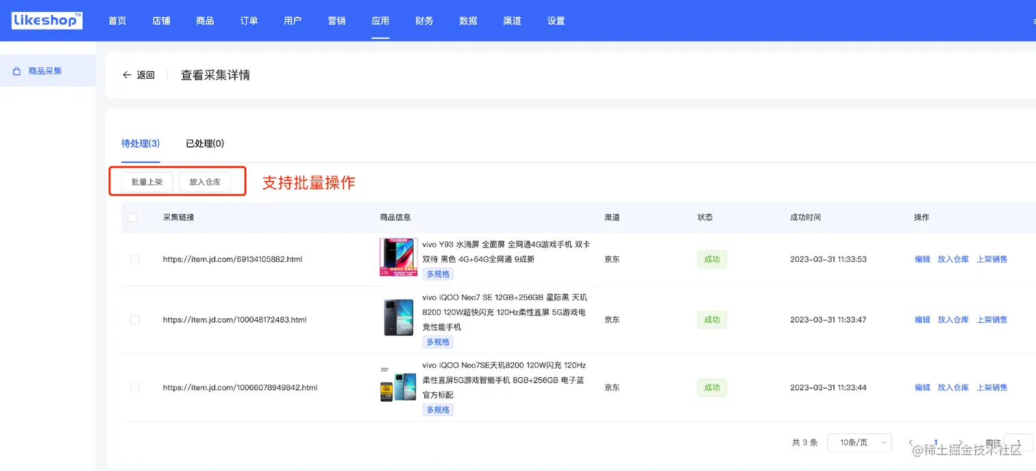 采集到的商品支持批量操作,节省时间,也可以对单个商品进行操作、编辑