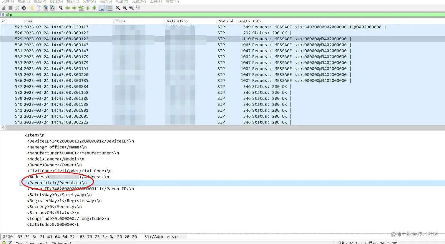 通过抓包后查看,发现这个华为NVR设备在配置传输的信令消息和标准的国标GB协议有出入:
