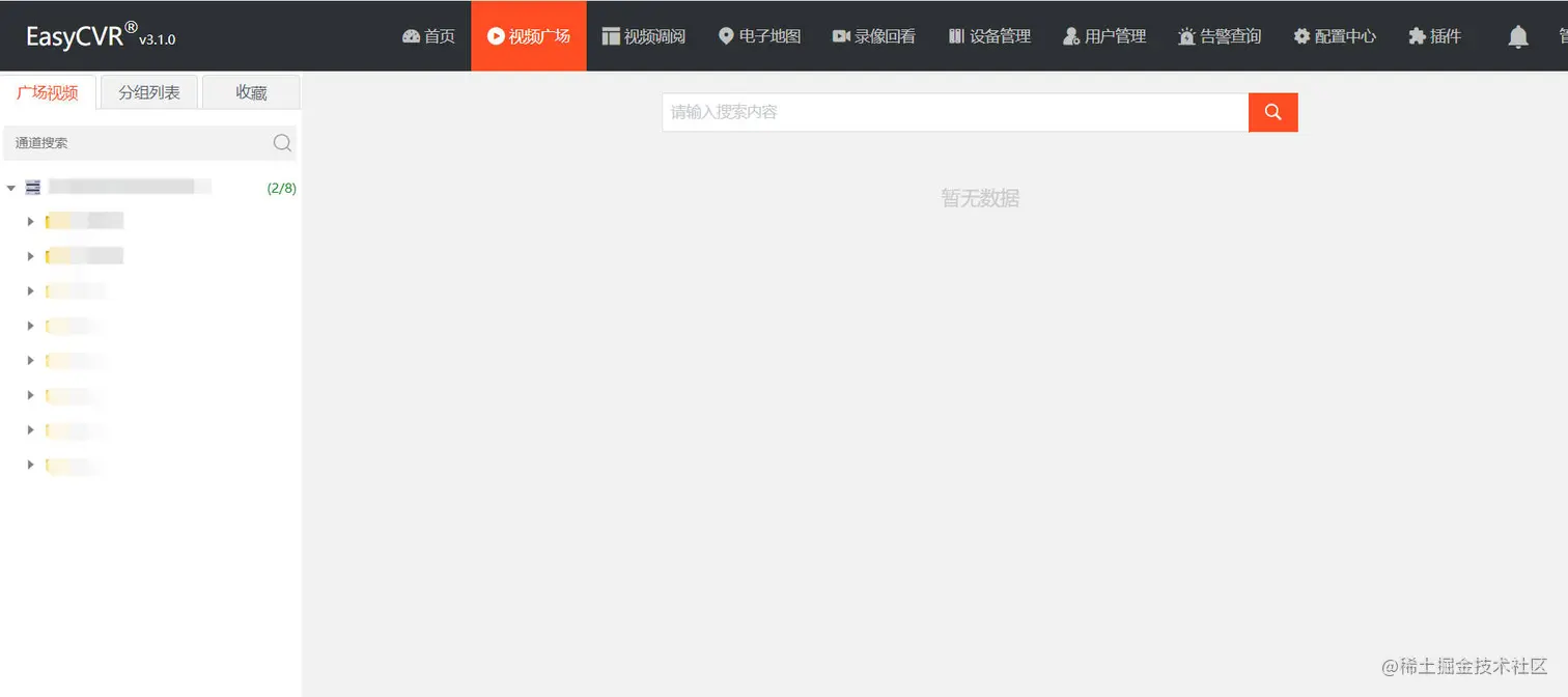 但是在EasyCVR平台上,显示的是组织结构的情况,如图: