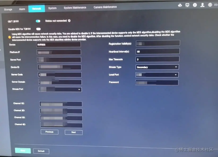 在EasyCVR对接华为NVR设备的过程中,通常是使用国标GB28181协议,但是有些海外的华为NVR虽然具有支持国标GB协议的功能,但是传输协议的SIP消息有问题,和我们经常使用的国标GB协议不一样。一般在NVR上配置如下: