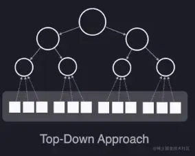 自上而下的构建方式,会先从最广泛的,最有可能满足目标的内容及功能开始分类,再依据逻辑细分次级分类。(MVP 的设计思路)所有分类都是空槽,最后将内容和功能按顺序填入。它有一个明显的缺点是:可能导致现有重要内容被忽略。
