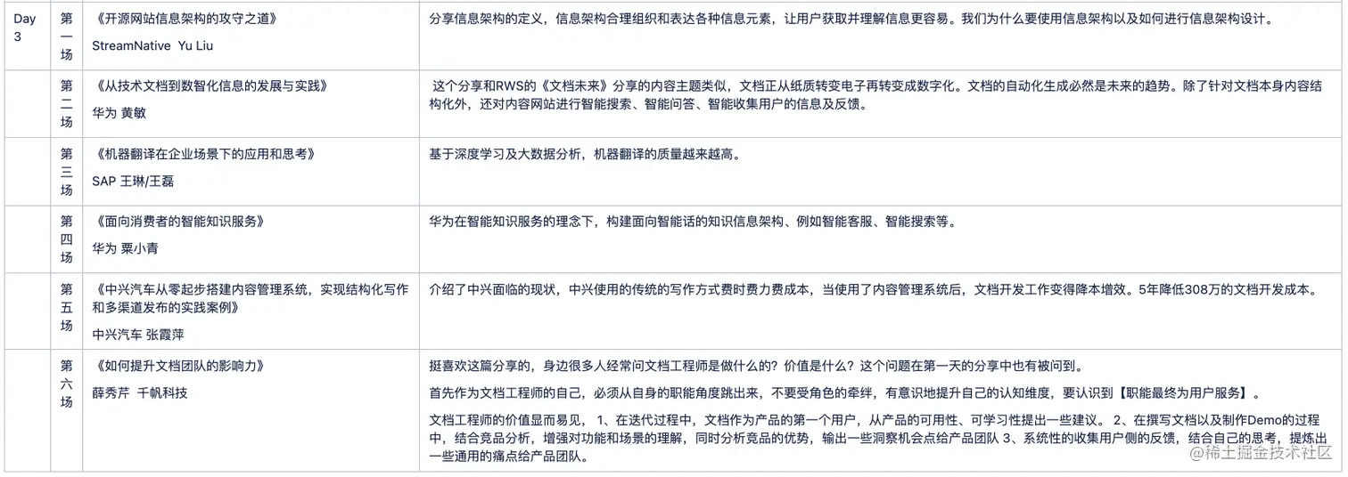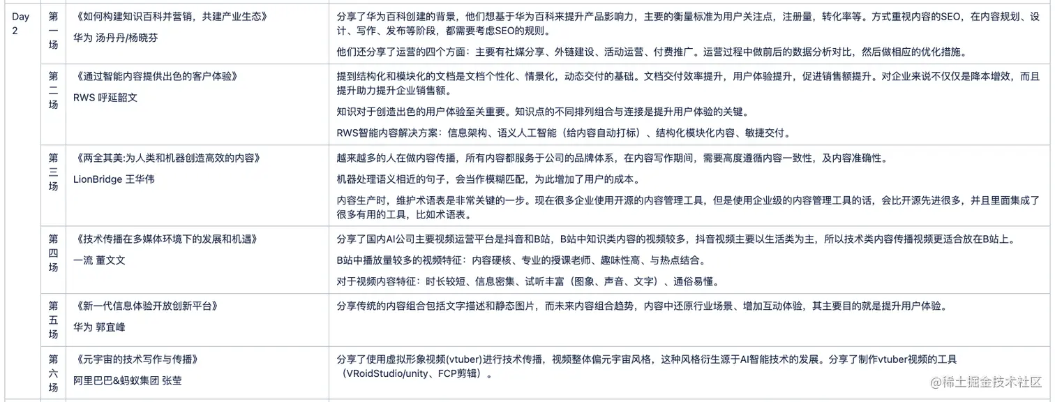 大会中对技术文档工程师的价值、文档内容编辑方式、呈现方式、运营方式的现状及发展趋势做了相应的分享。在这过程中,我也收获了一些新知识和有了自己的一些思考。