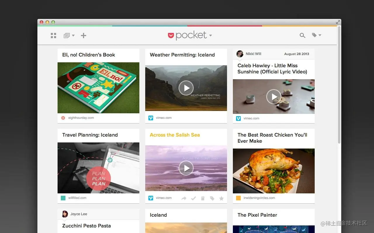 Pocket是一款网络收藏工具,可以让你保存网页、文章、视频等内容,方便以后阅读或观看。Pocket还支持离线阅读、标签管理、推荐功能等,让你的网络收藏更有序、更有趣。