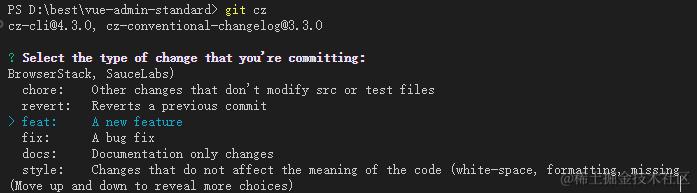 3. 执行 git cz 进行格式化。 前提是 git 暂存区存在更改文件