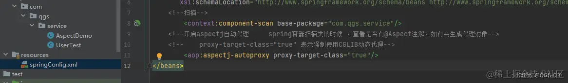 <!--开启aspectj自动代理 spring容器扫描类的时候 ,查看是否有@Aspect注解,如有会生成代理对象-->