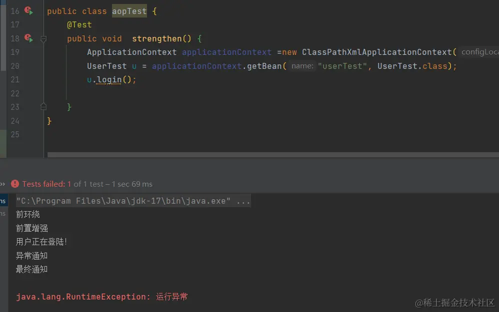 异常通知:AfterThrowing() 发生异常之后执行的通知