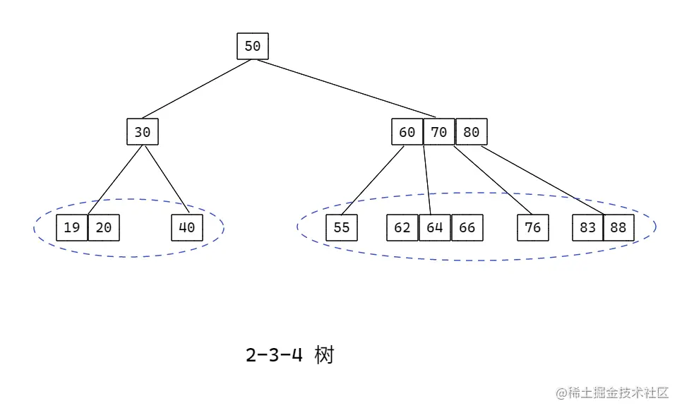 2-3树,2-3-4树就是多叉树。 - 示意图: