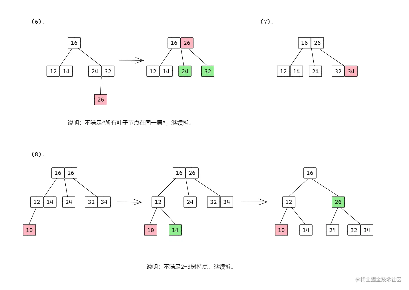 - 有三个子节点的节点叫三节点,三节点要么没有子节点,要么有三个子节点;