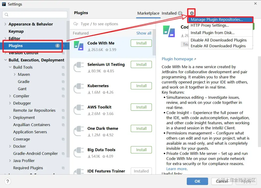打开插件中心 File -> Settings -> Plugin,设置插件中心仓库,如下图