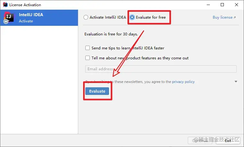 选择"Evaluate for free"
