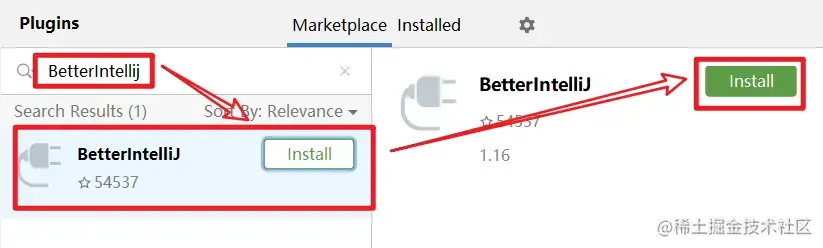 点击ok,然后插件中心搜索“BetterIntellij”,安装,如下图