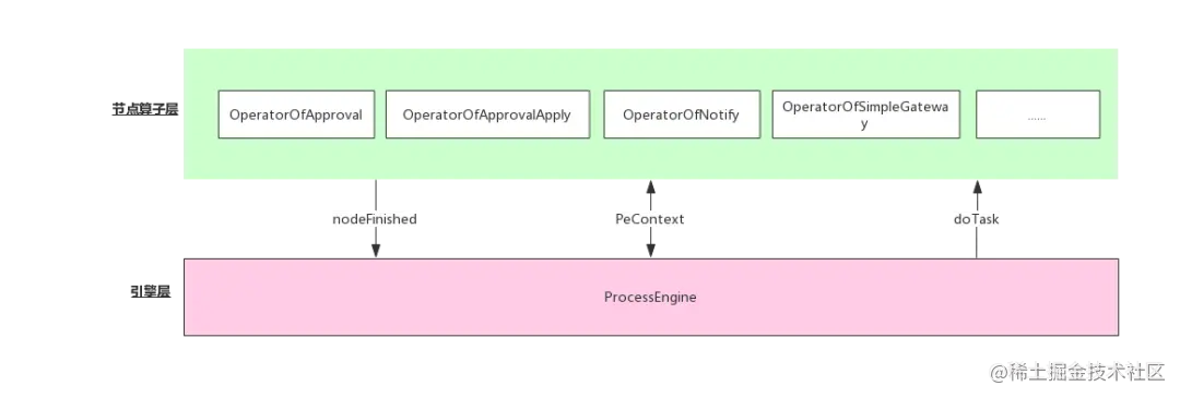 通过此图我们可知,这里有一个相对稳定的引擎层,同时为了提供扩展性,提供了一个节点算子层,所有的节点算子的新增都在此处中。
