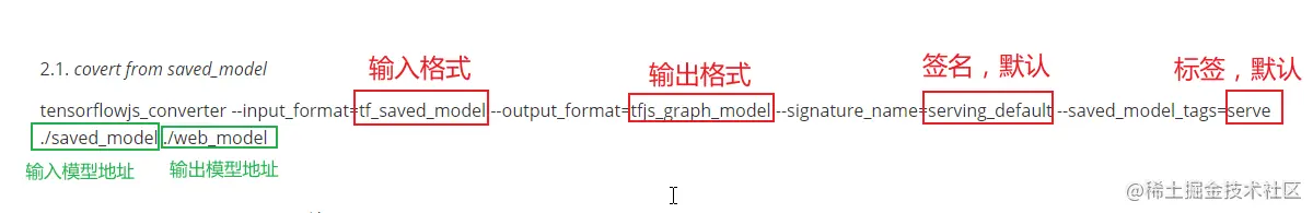 tensorflowjs_converter --input_format=tf_saved_model --output_format=tfjs_graph_model --signature_name=serving_default --saved_model_tags=serve ./saved_model ./web_model