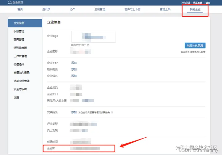 corpid 可以通过 我的企业 → 企业信息 → 企业id 获取