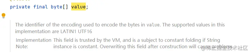 我们可以看到String对象的内容(值/value)在底层是一个byte类型的数组,而String源代码重写了equals方法,在==判别之后又进行了关于value的判别。也就是说对String的equals方法能够考察到具体值。