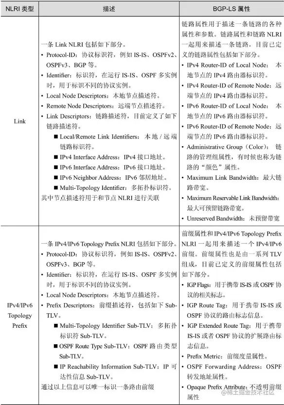 表4-1 链路状态NLRI和属性的摘要信息