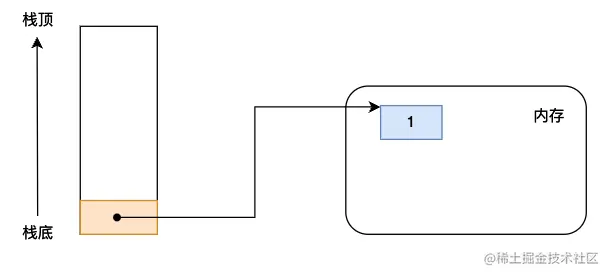 - LOAD_CONST,将常量表当中的下标等于 i 个对象加载到栈当中,对应上面的代码 LOAD_CONST 的参数 i = 1。因此加载测常量等于 1 。因此现在栈空间如下所示: