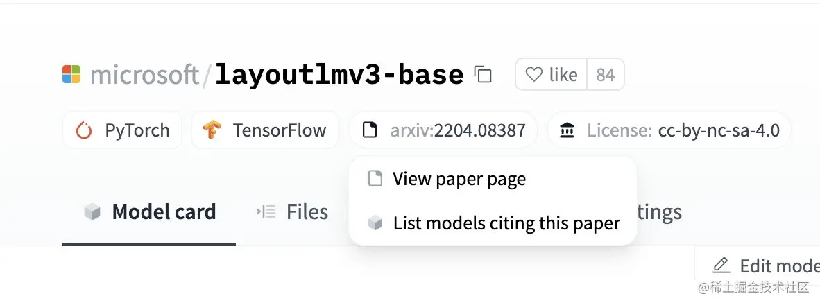 你还可以通过论文编号查询模型、数据集和 Space 应用,也可以在模型和数据集页面直接访问到论文页面: