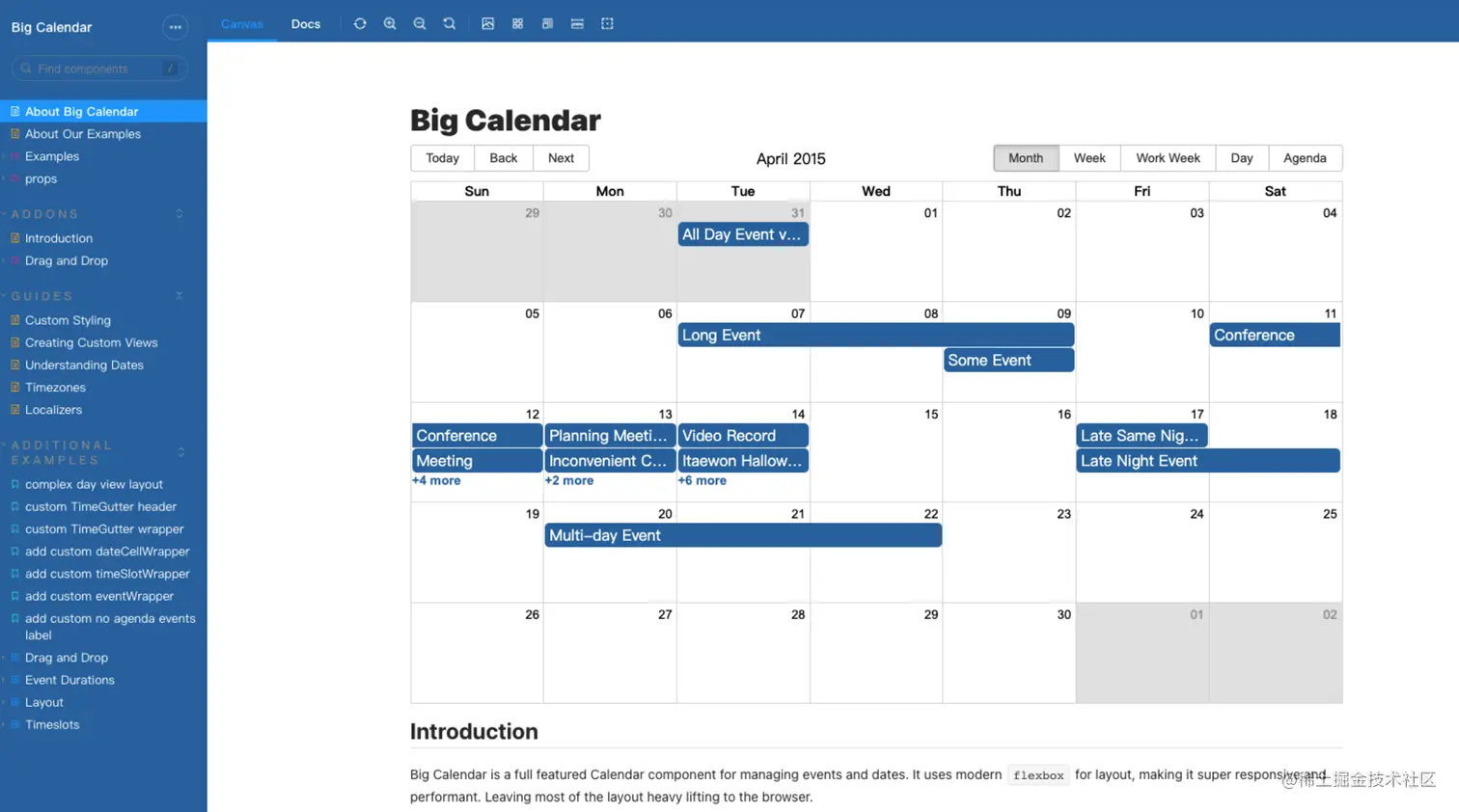 React-big-calendar 是一个用于构建 Web 应用程序的日历库。 React-big-calendar 支持多种日历类型,包括月视图、周视图、日视图等。 React-big-calendar 还支持多种平台,包括 Web、React Native 等。React-big-calendar 的一个优点是它的灵活性,可以根据需要自定义日历的各个方面,包括事件的显示方式、时间的格式、时区等。