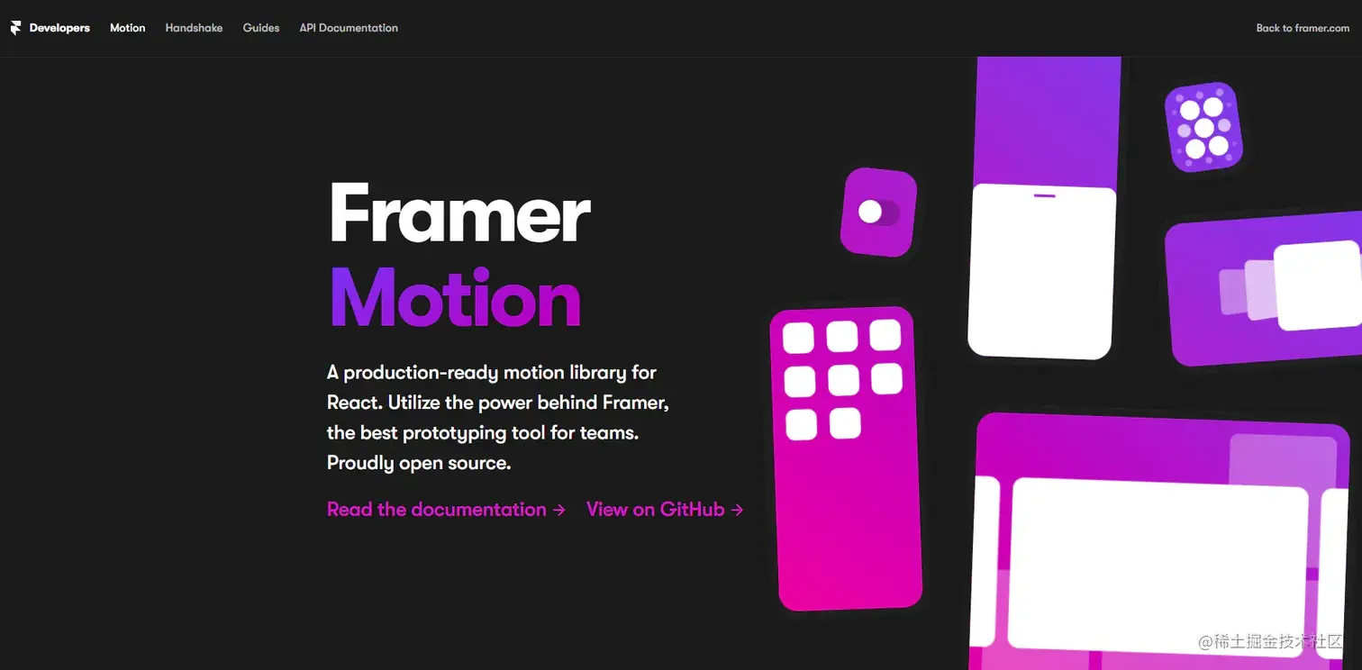 Framer Motion 是一个基于 React 的开源动画库,它提供了一系列简单易用的 API,可以帮助开发者快速构建流畅、自然的动画效果。