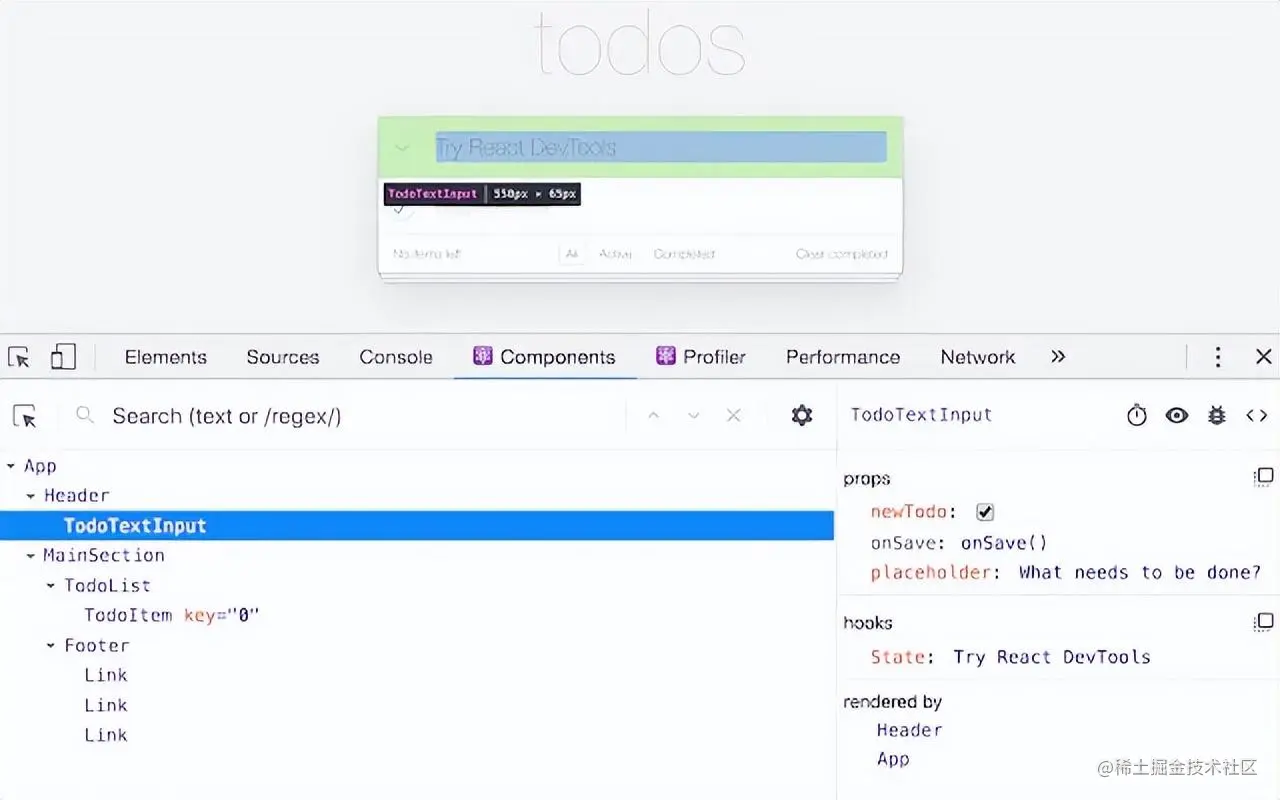一款调试React组件的浏览器工具,使用它你可以看见你的React 组件的属性,以及状态等信息。