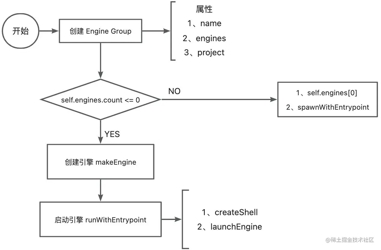 - 通过 spawnWithEntrypoint 源码我们知道了采用 Group 管理多引擎,为什么能大大降低内存原因:因为多个引擎的公用的是同一个 _shell 部分资源~