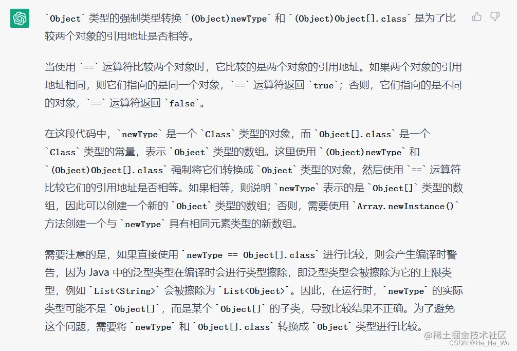 可是a本来不就是T[]的类型吗?newType设置成a.getClass(),又为什么要强转呢?