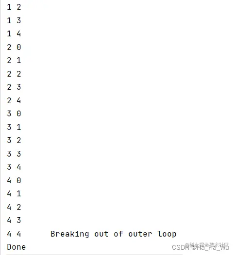 System.out.println("Breaking out of outer loop");