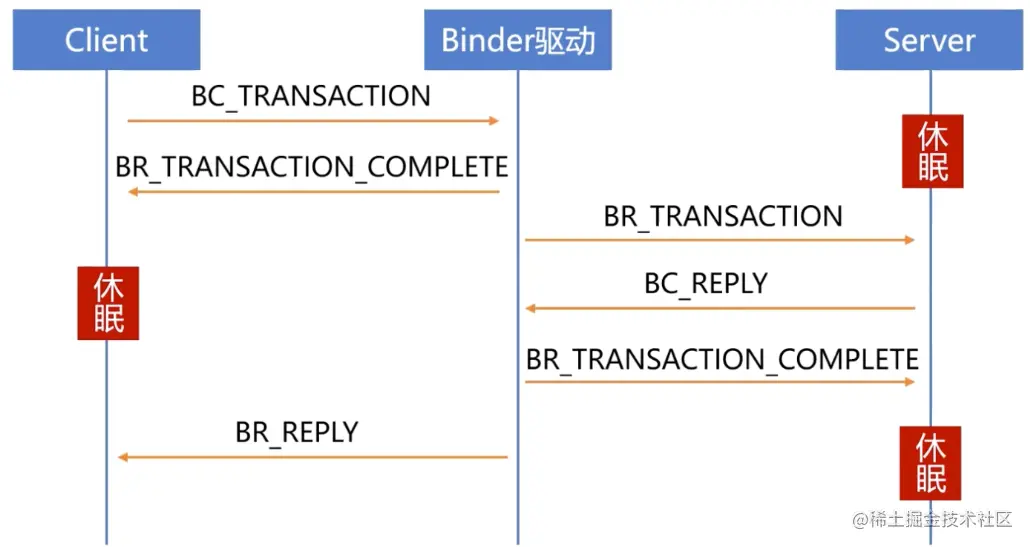 上面已经说清楚了 Binder 通信模型的大致流程,下面可以再说一下一次完整的 IPC 通信流程是怎么样的。