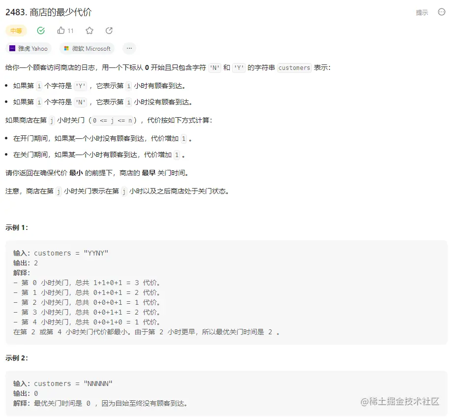 3.第i时关门的代价=prefix[i] + suffix[i + 1]