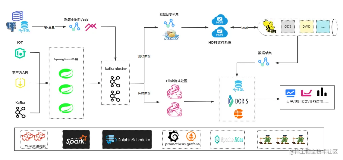 下面是数仓的架构图,包含了离线数仓和实时数仓。