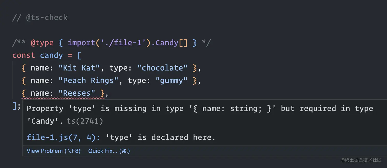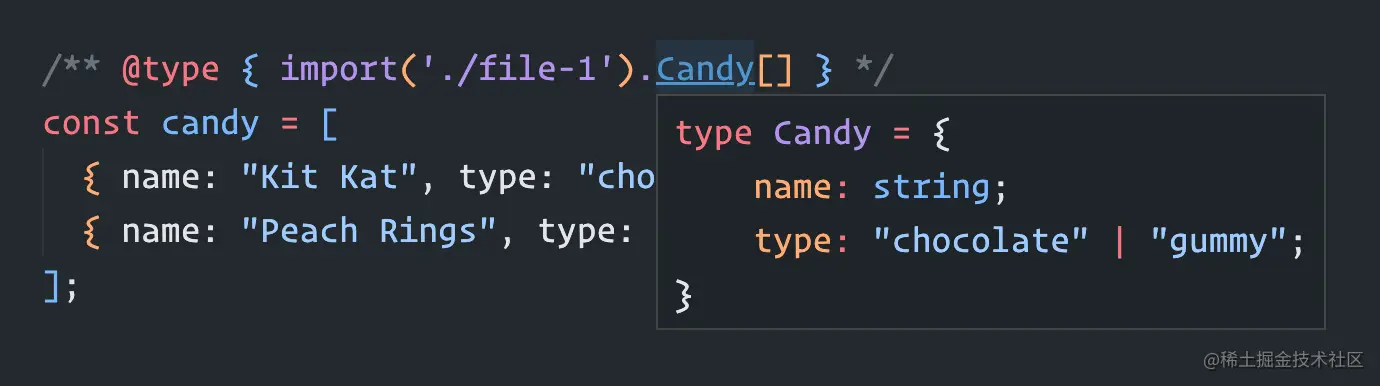 在 js 文件中使用注释定义类型,并且在其他文件中引用。