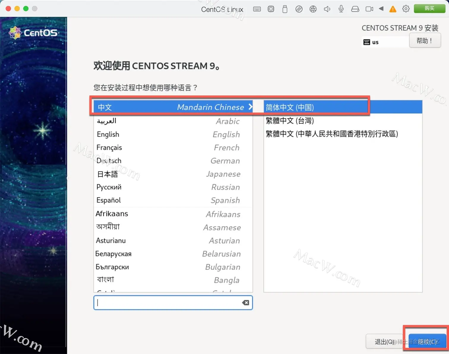 选择语言,点击继续