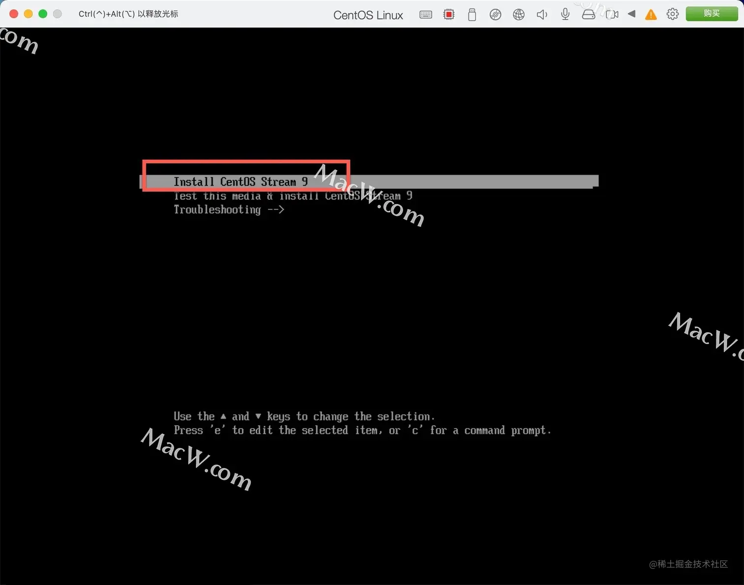 选择第一行,install centos stream9