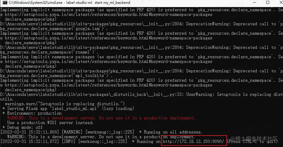 成功启动后,在终端中可以看到 ML 后端的 URL。