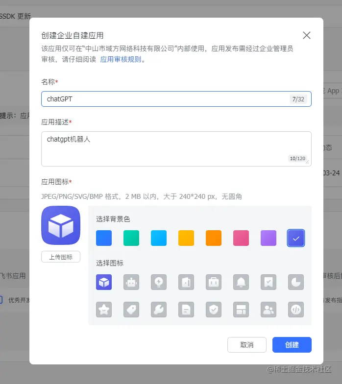 填写应用名称和描述,还有头像也可以自己修改。
