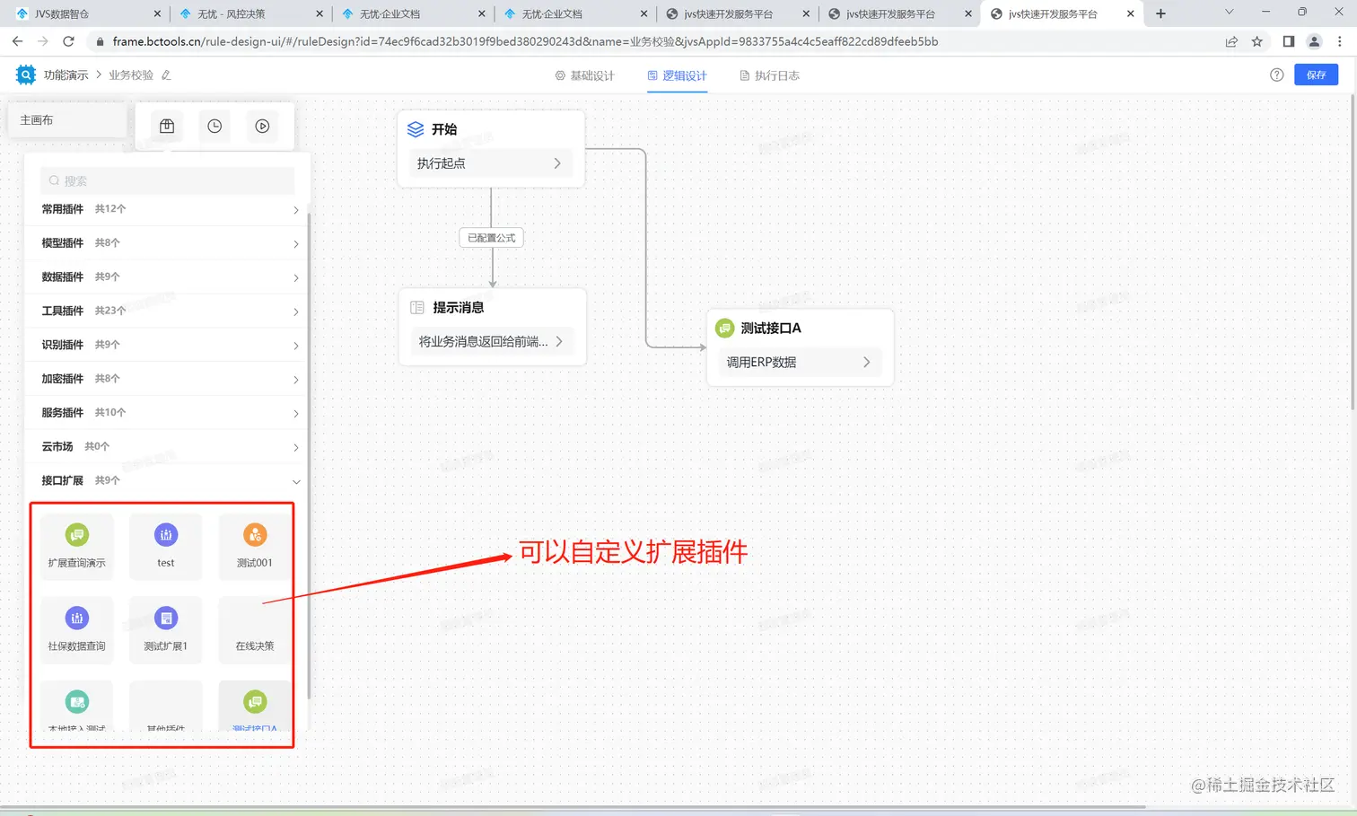 6.组件扩展能力与外部系统对接能力:逻辑引擎提供了可扩展的组件能力,并且可以对外提供API接口,也可以将api的接口快速封装为。