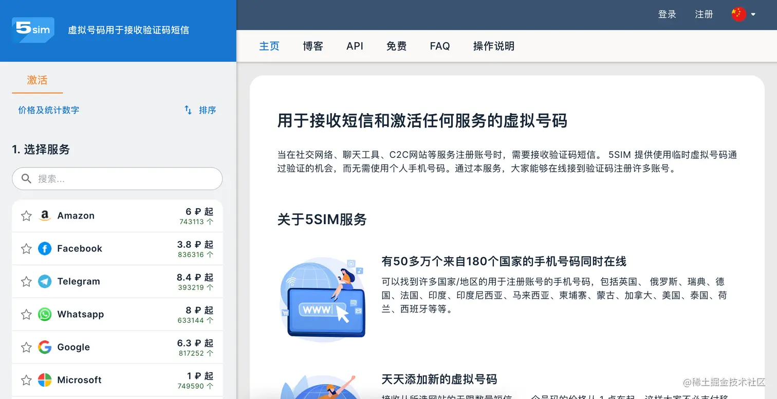 1.打开 5sim.net ,点击右上角注册