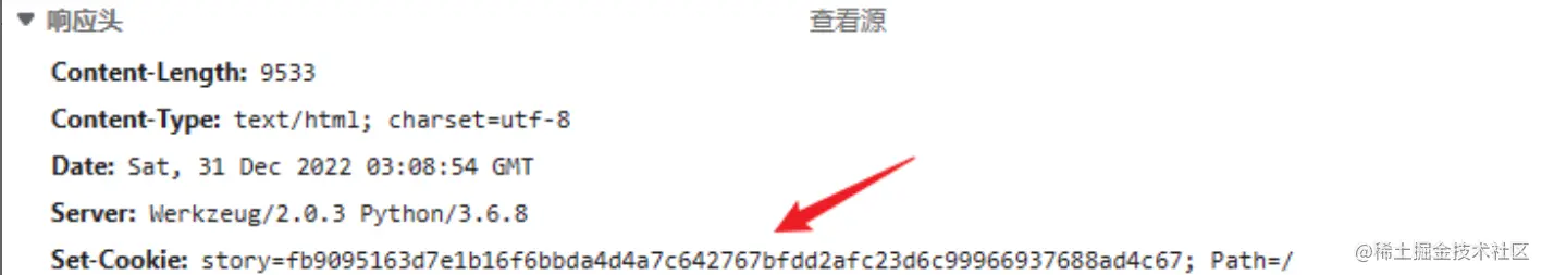 例如,下面的代码片段展示了如何在 Flask 中设置一个名为 story 的 Cookie,并将它的值设为前文建立的加密串。