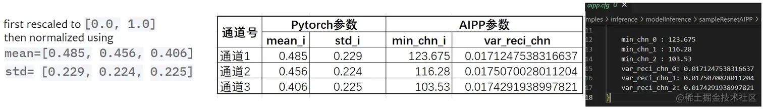 AIPP减均值乘系数的计算公式: