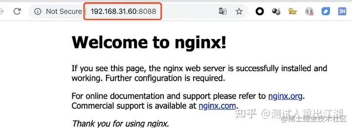 浏览器地址栏访问你的 Nginx 服务。格式为:http:// 你的IP地址 :8088