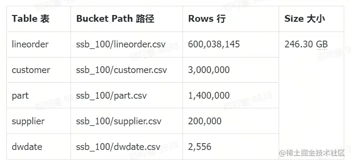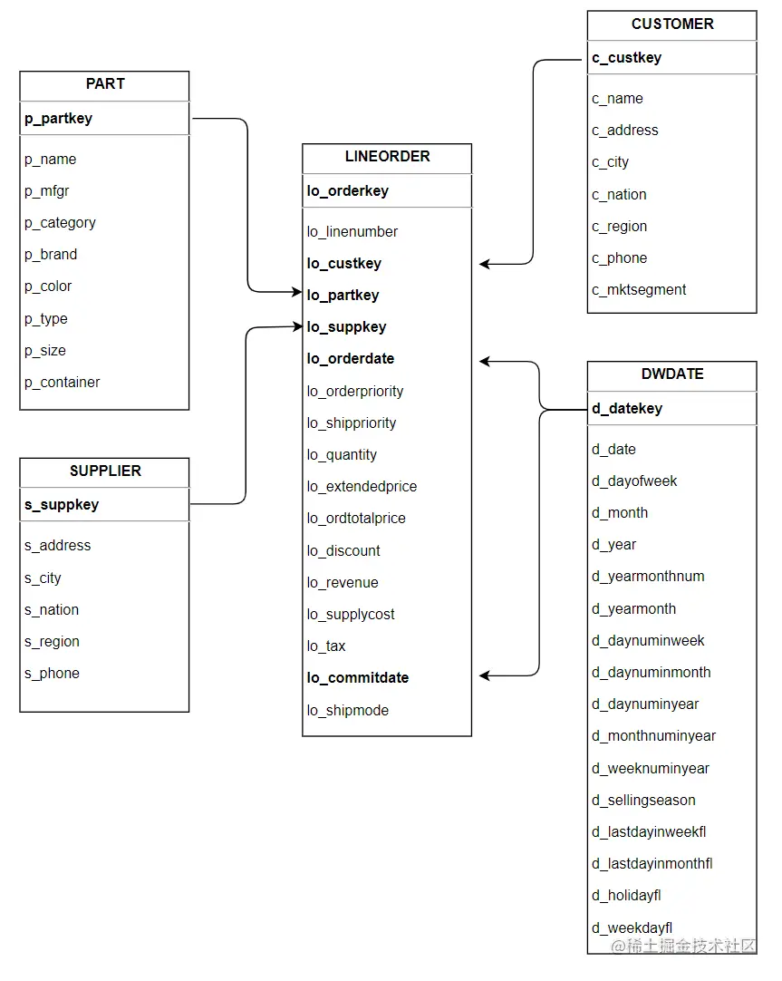 为了方便对 SSB 数据集进行测试,我们可以通过改写 SSB,将星型模型打平转换为大宽表进行分析